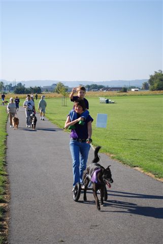 Lucy a perdu une patte de devant suite a un ostéo-sarcome et se rejouit, de pouvoir refaire à nouveau des balades prolongées grâce à sa CR.