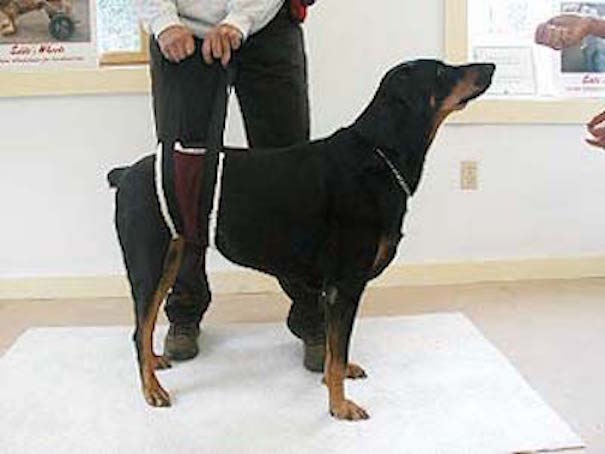 - Le chien doit être debout dans une position aussi physiologique que possible sur un sol ferme.