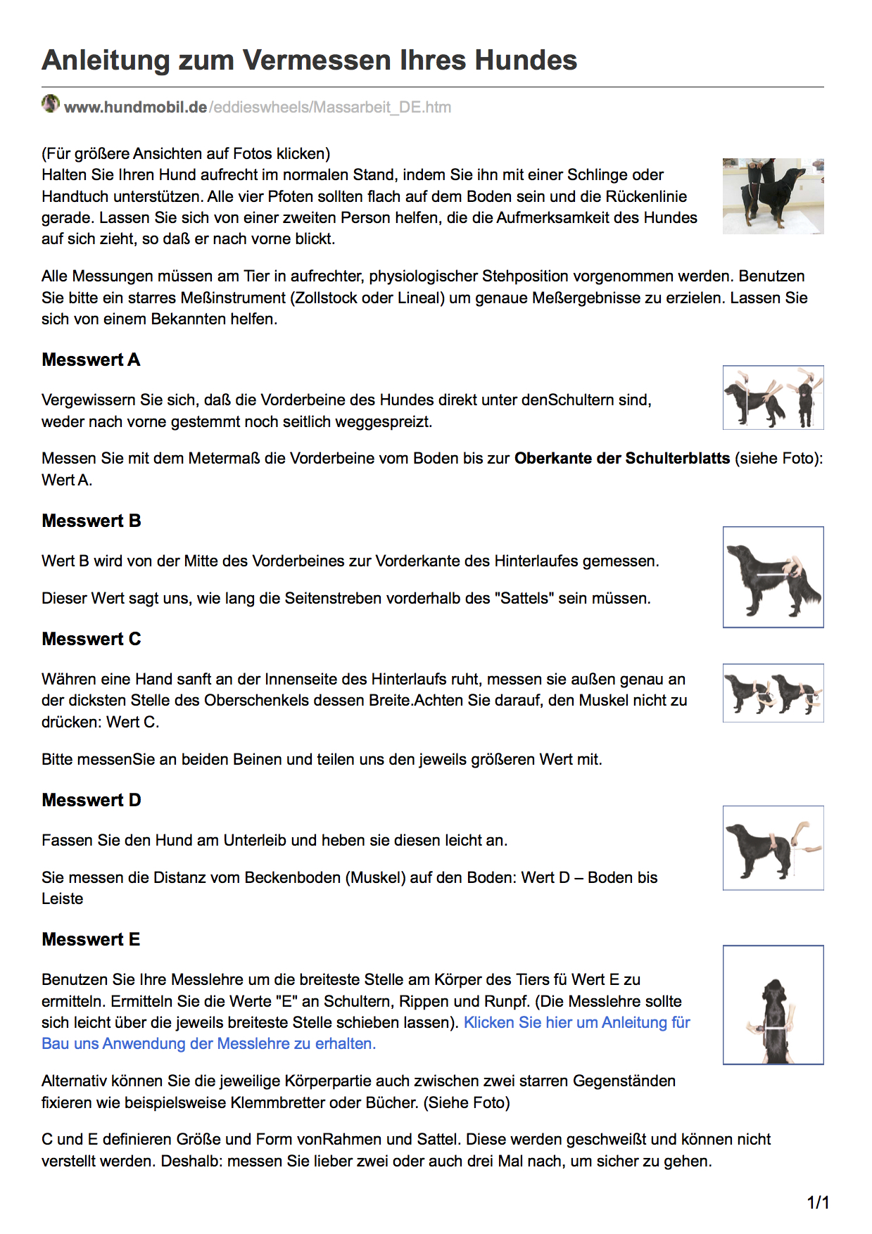Seules des valeurs mesurées avec précision sur votre chien sont la base de chaque commande. Ils nous donnent des renseignements sur son physique, ses proportions et ses besoins. Aussi pour une même race , chaque chien est différent. Nous devons prendre en considération ces différences individuelles, si nous voulons aider le chien avec une chaise roulante! Par conséquent, avant que vous passerez une commande, veuillez bien lire les instructions. Cela nous permettra de prendre en compte des renseignements supplémentaires ou des problèmes plus complexes et évitera que la CR soit inadaptée et donc non acceptée par votre chien! Notez bien que sur la base de valeurs mesurées non conformes, nous ne prendrons pas la responsabilité d’exécuter une commande qui non semble inadaptée. Donc nous recommandons expressément, que vous admettez nôtre offre de service et venez personellement avec votre chien à me voir.