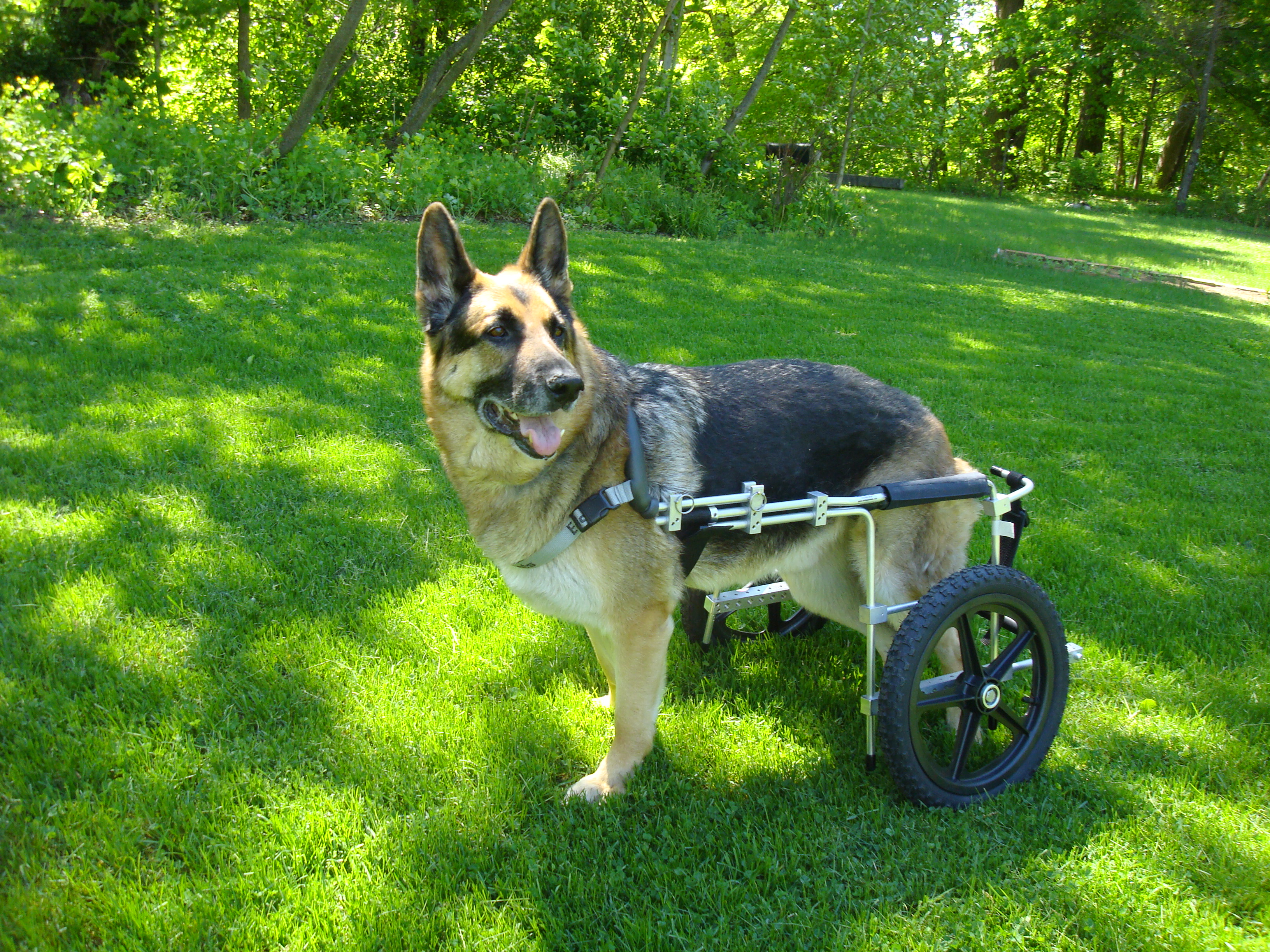L'effêt hagardant de cette maladie est, qu'elle se passe absolument sans douleur, et apart qu'ils ne peuvent pas courir, ces chiens sont sains et heureux. Ils veulent faire toujours cela auquel ils sont habitués - balades et activités communes avec leurs familles. Au cours des années nous avons améliorées les CRs standard. Ces améliorations permettent de positioner les roues plus loin en avant. En combination avec un sangle confortant autour la poitrine les chiens, dont les pattes de devant sont touchées, peuvent utiliser ses CRs jusqu'à une année plus longtemps.
