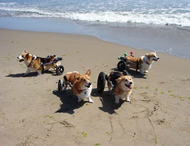 Une bande des Corgis célèbre une fête de plage „roulante“ dans ses karts.