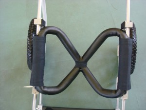 L'appui du K9-Carts se compose des câbles en métal rembourrés, aussie lié avec un collier de serrage au centre. Çela gêne et les angles trop aigus des anneaux peuvent écorcher les cuisses coté median.