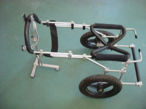 Notre cart standard peut être transformé, pour l’ adapter à de nouveaux besoins de l'animal. Si votre chien souffre d’une DM qui affaiblit un jour ses pattes de devant, un contrepoids supplémentaire sera installé pour garder la mobilité et la qualité de vie de votre chien pour de nombreux mois encore. Des roues d'appui démontables peuvent être installées à chaque CR, pour d'en faire un déambulateur à quatre roues.